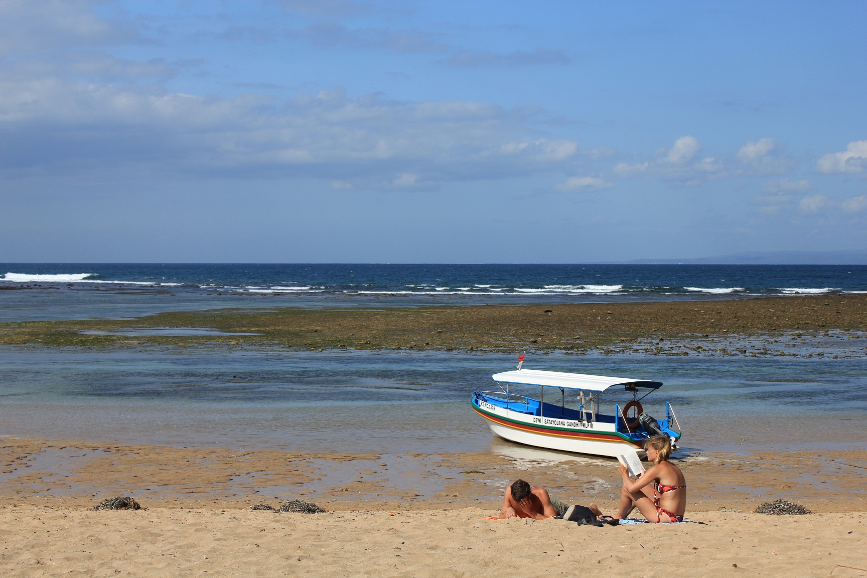 ずーーと直進するとすぐスガラビーチだよ!!! サヌールはのんびりしていていい感じ。