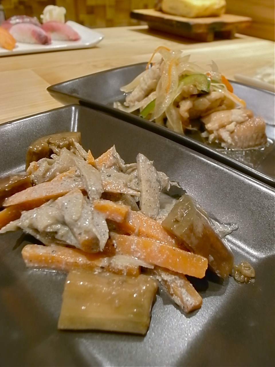 まずはアペタイザーから日本のお惣菜が出てきます。
