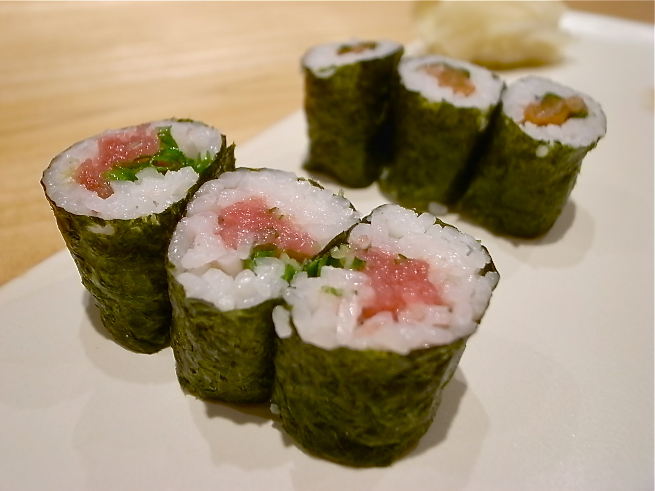 こちら〆の巻物 ネギトロと梅しそ。 ここで赤出しも登場。