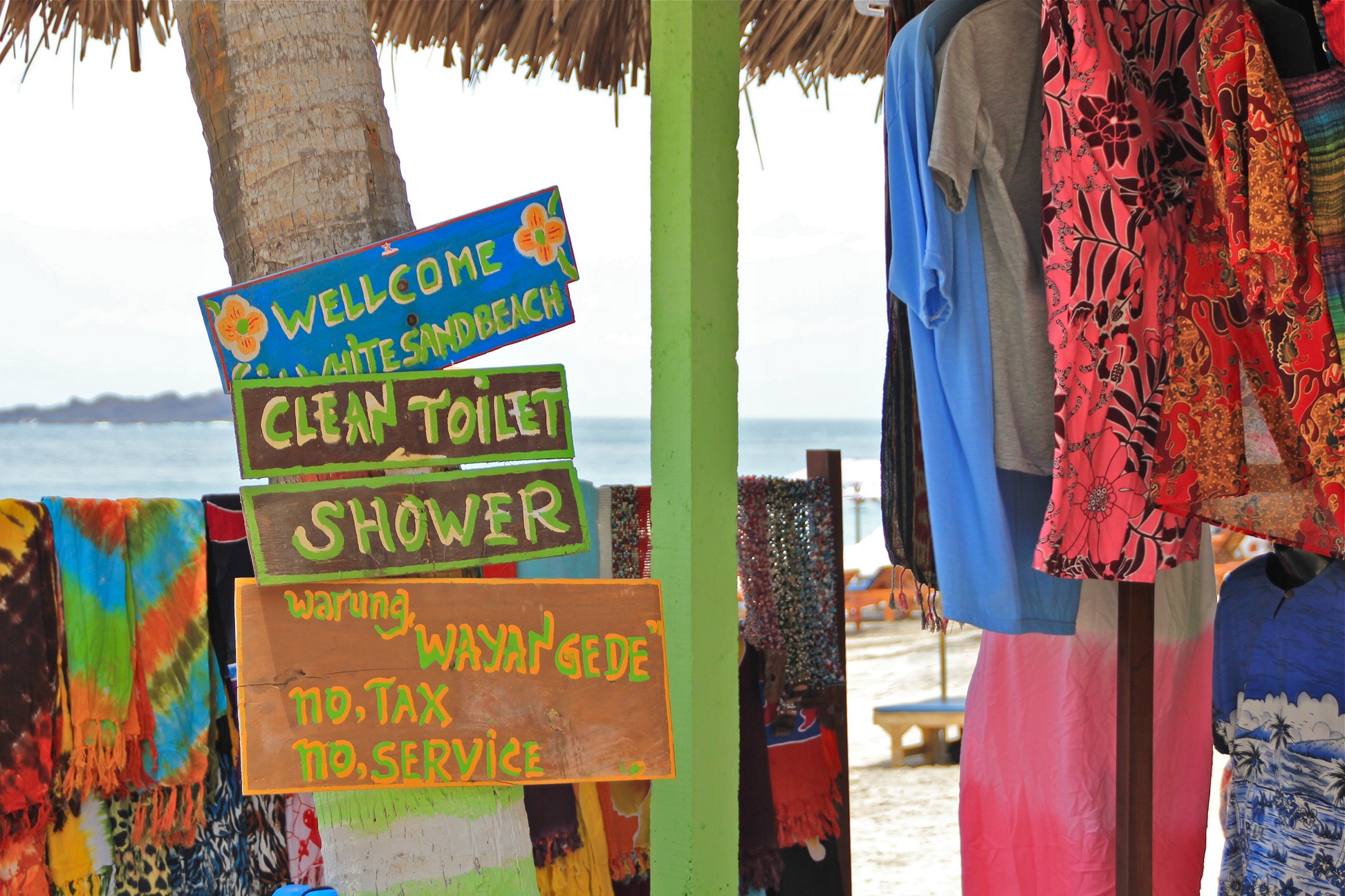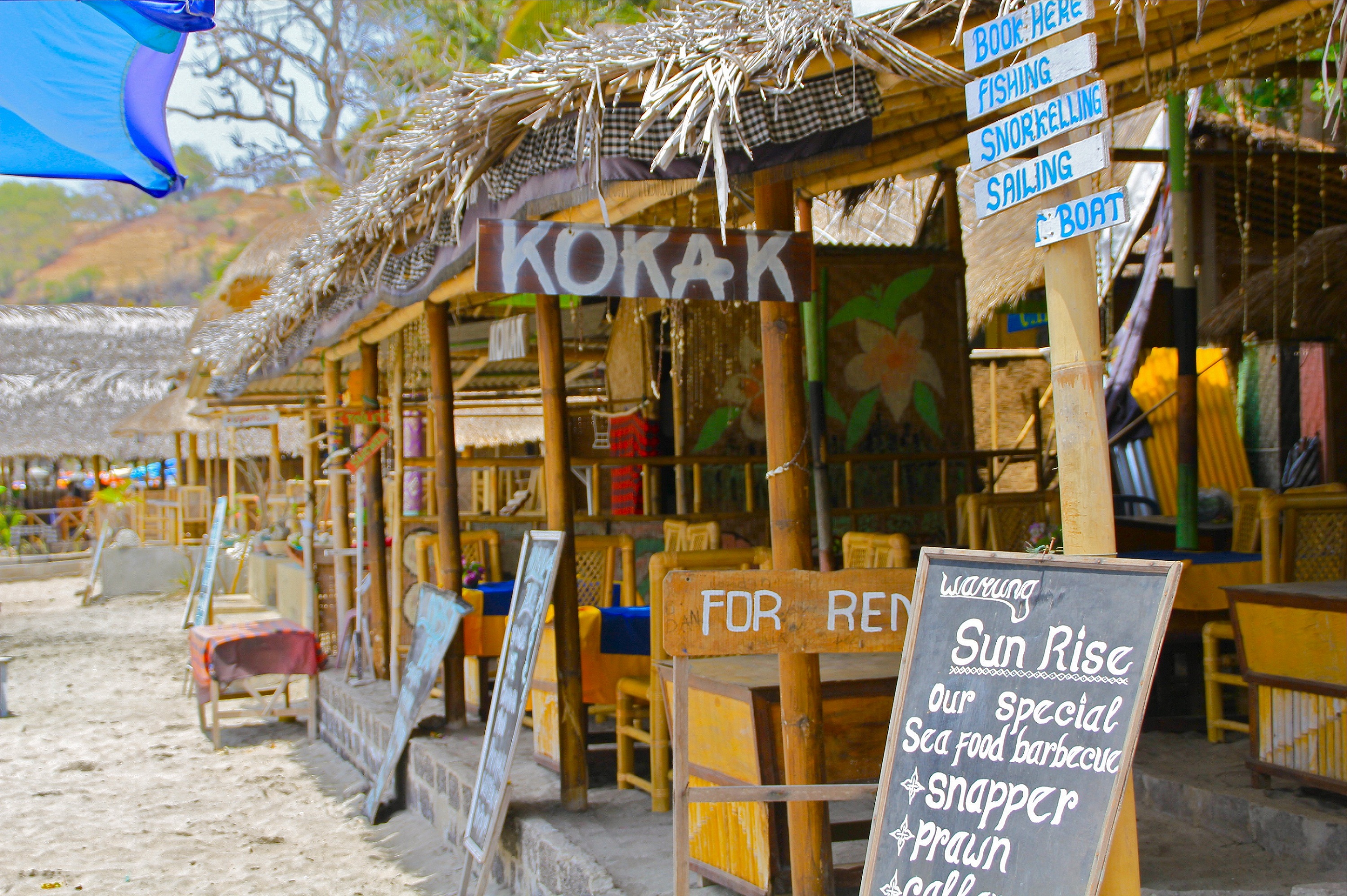 ワルン〔食堂〕も多く食事には困らなさそう。ワルンでお食事を頼めば、サンデッキの貸し出し無料なんですって!