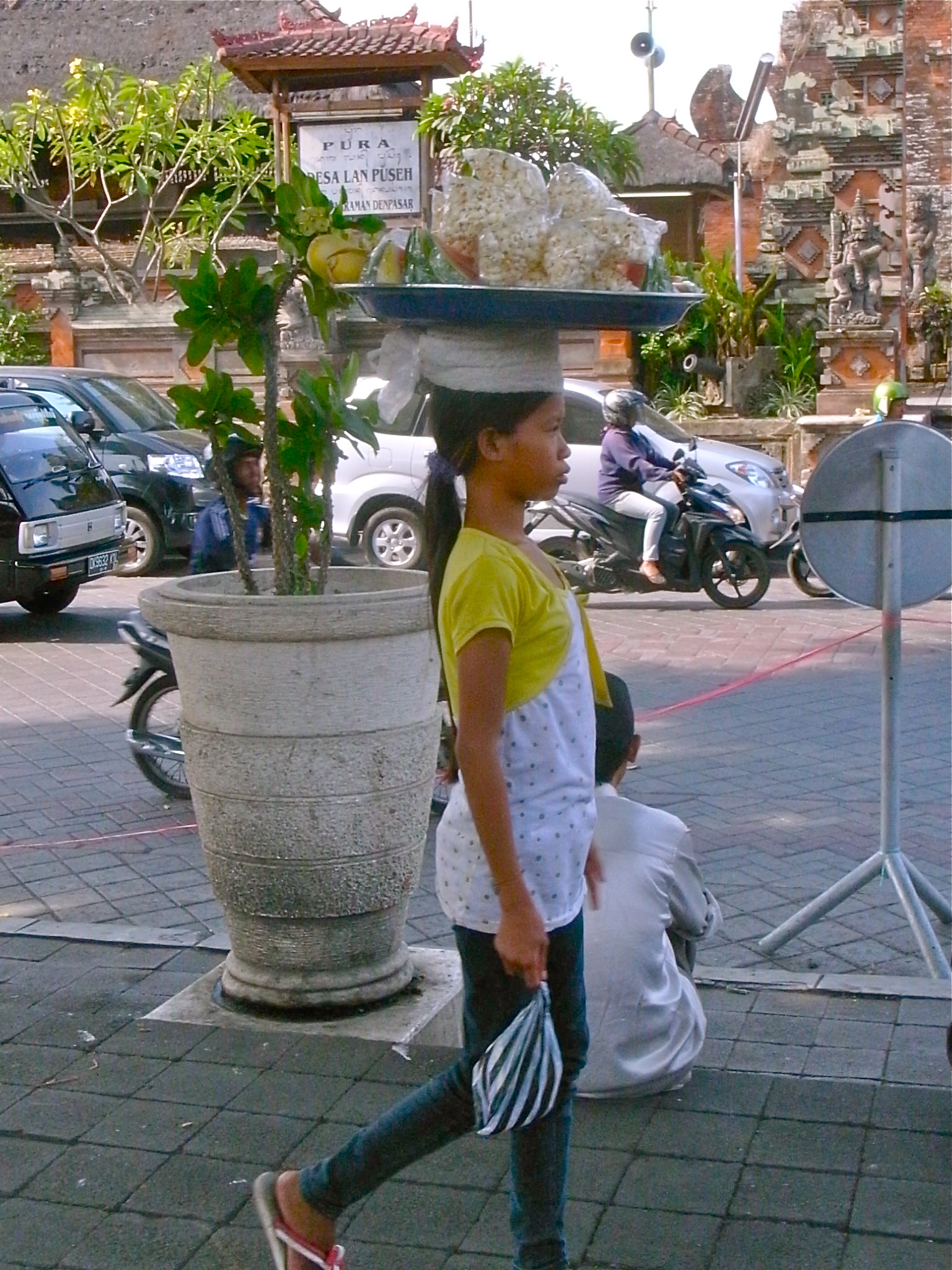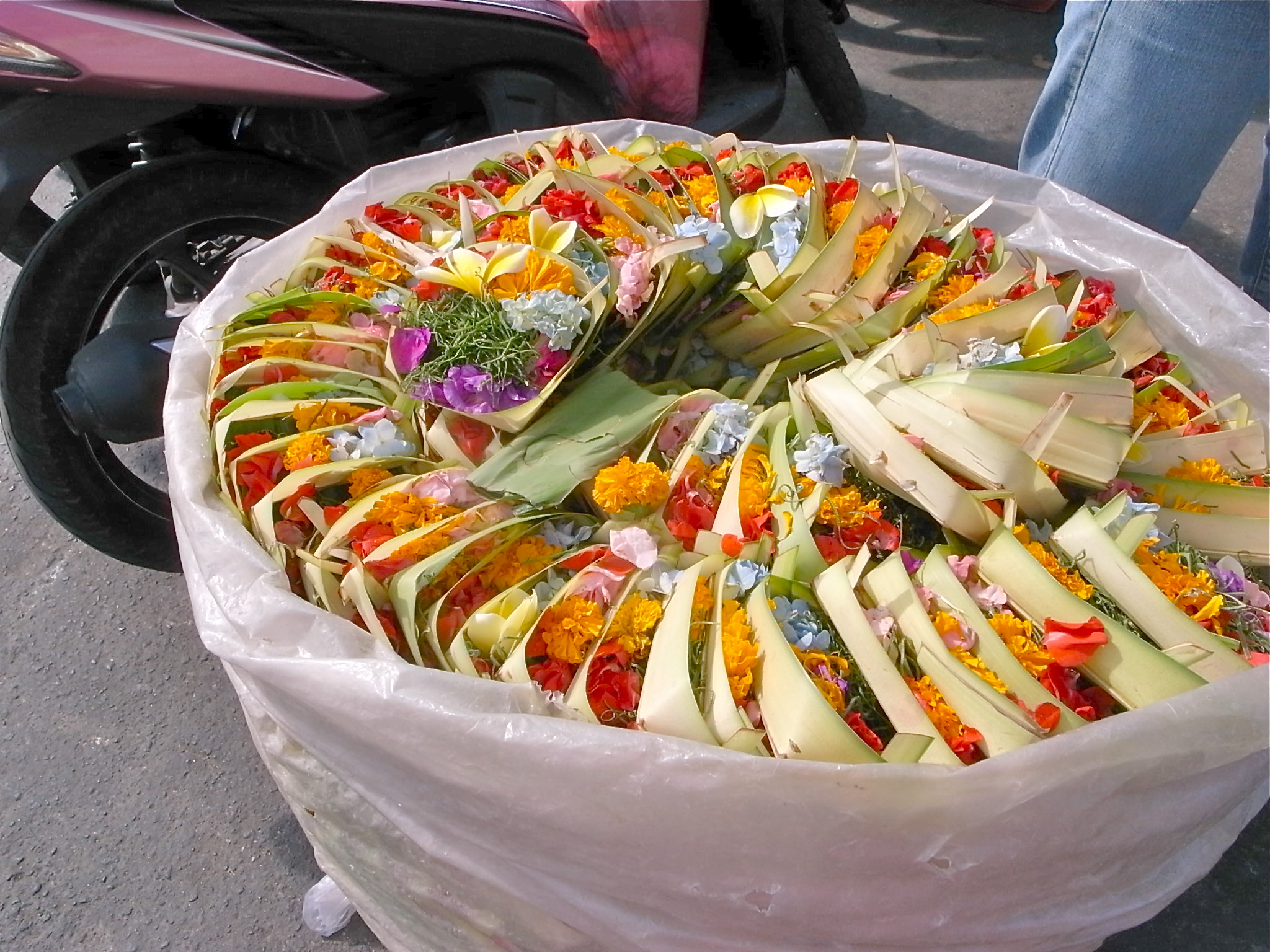 バリ島でお馴染みのお供え物『チャナン』を実際に作って売ってるおばちゃんなんかも。