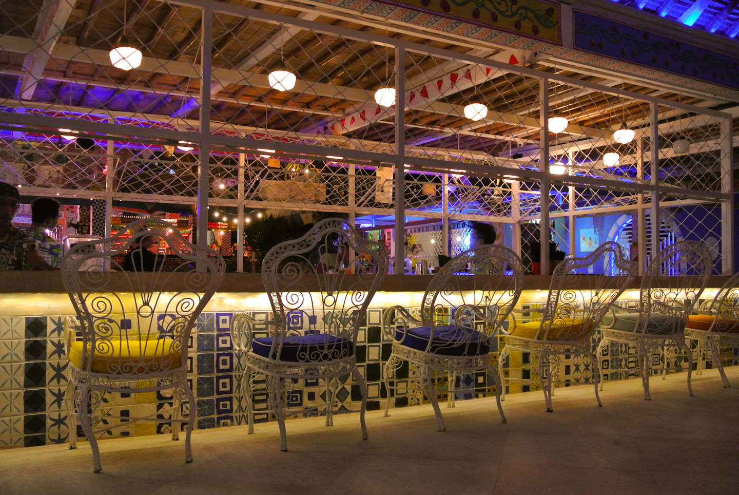 昼間の営業は正面のテラスのみ ディナーになると中のライトが光りエキゾチックさが増すんでーす。