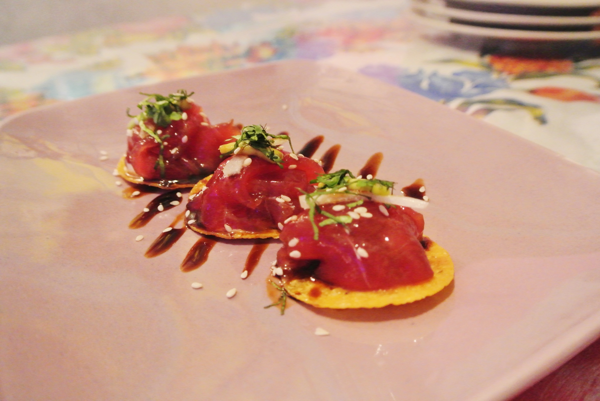 こちらはマグロとコーンチップスの上に バリ島の甘いしょう油がかかったもの