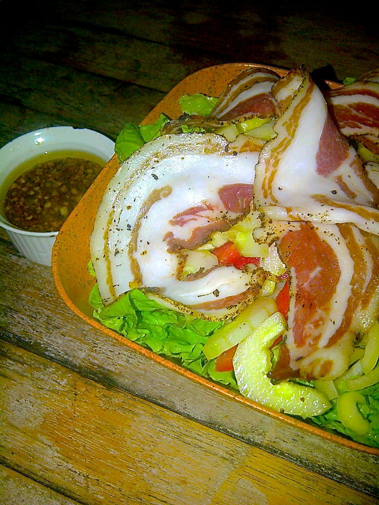 パンチェッタ・グリーンサラダ Rp 30.000ルピア+税サ
