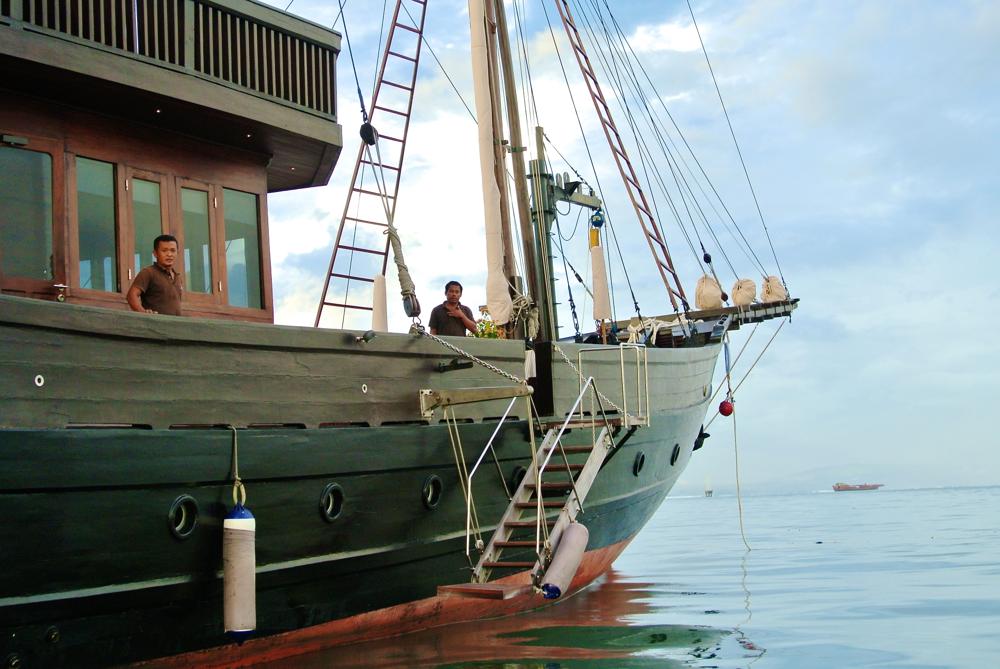 な〜んと船がサヌール近郊に碇泊してるとのことで 見学だけ! いや、ちょっぴり酒も・・