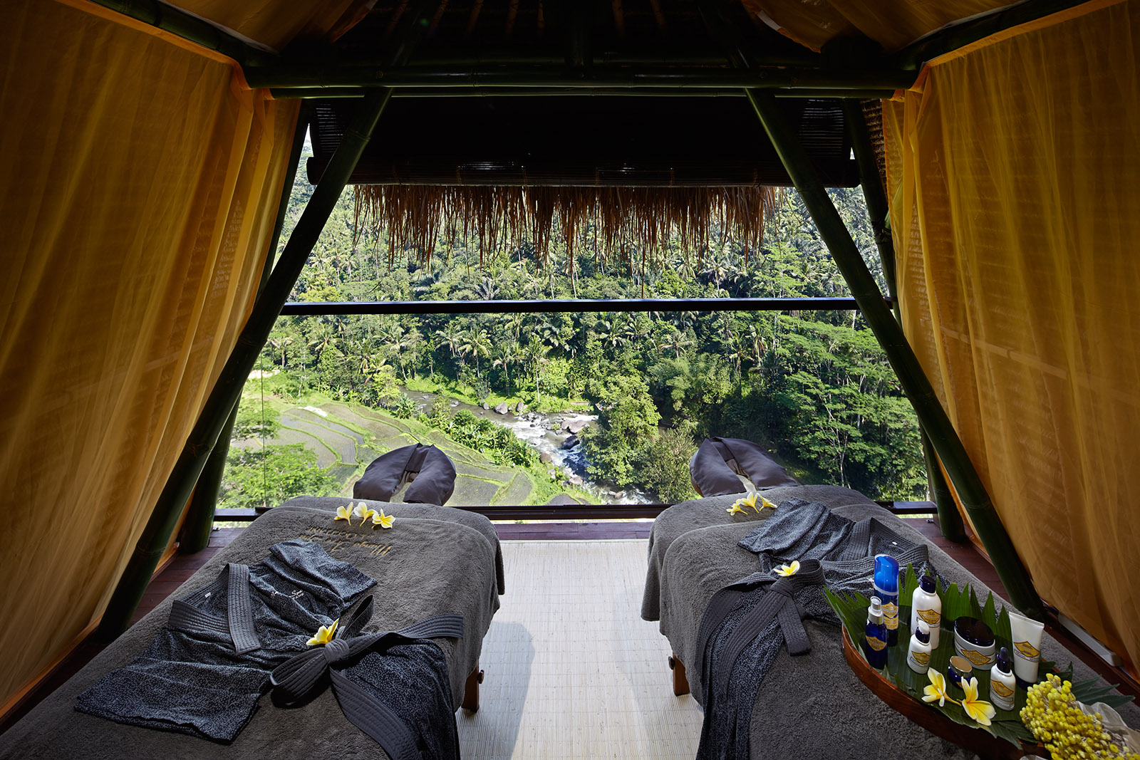 アユン川とライステラスが一望できるこのスパルームはなんと1室のみ!ヽ(●´Д`●)ノ