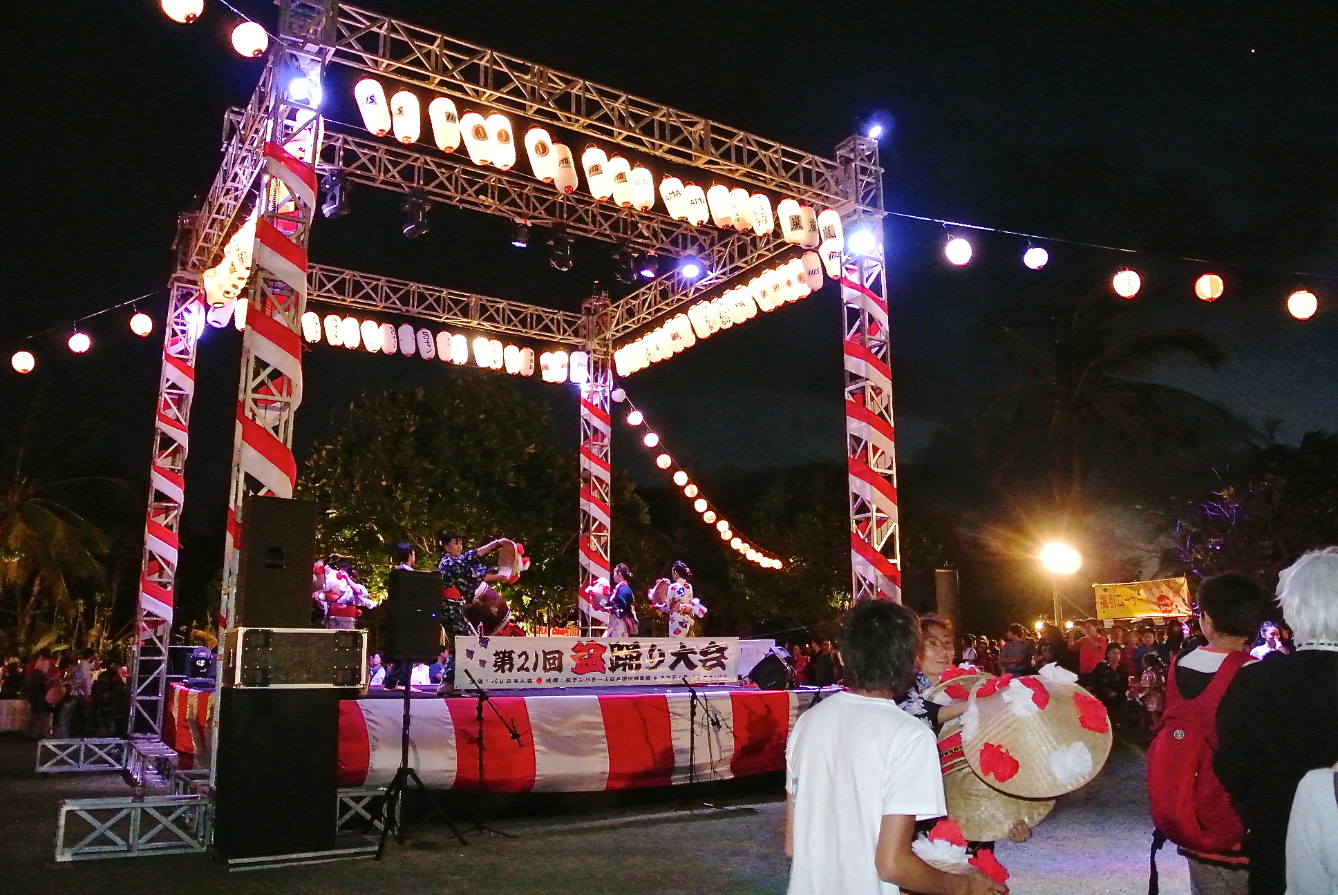 暗くなるにつれて メインの壇上提灯にあかりが灯ってきましたね。