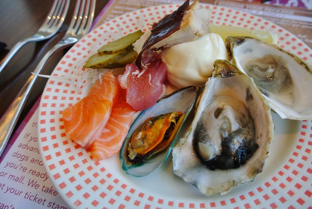 取りあえずやっぱり生牡蠣じゃろ〜! ということで牡蠣とムール貝と刺身をゲット。