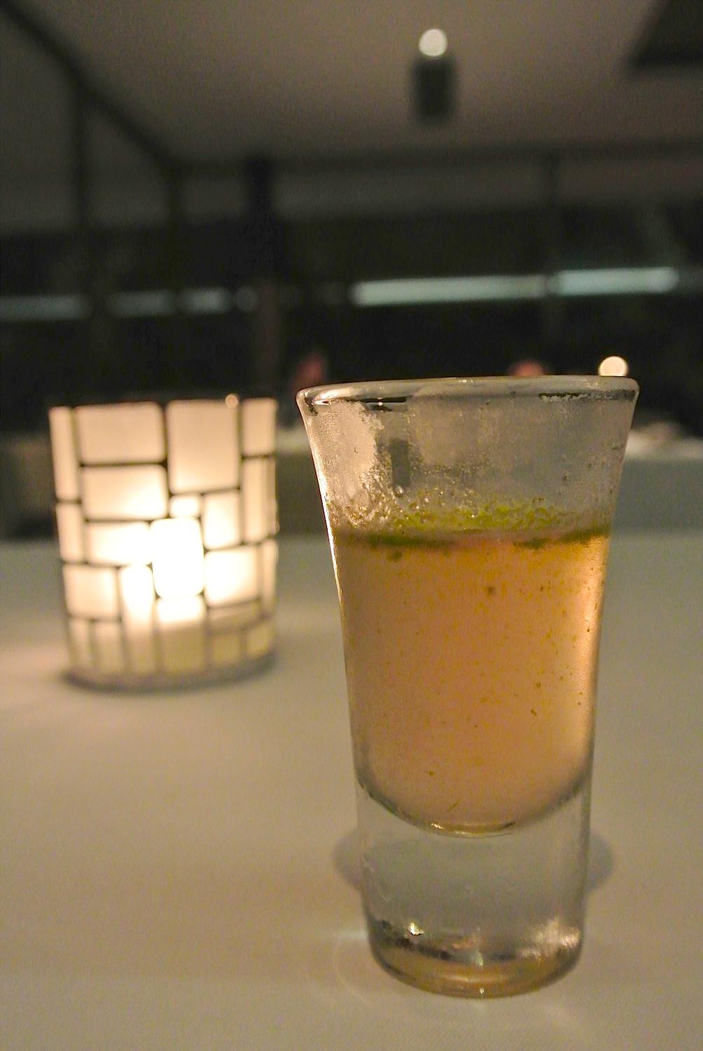 食べるぞー!!ヽ(●´Д`●)ノ まずはトマトベースの食前酒から♪