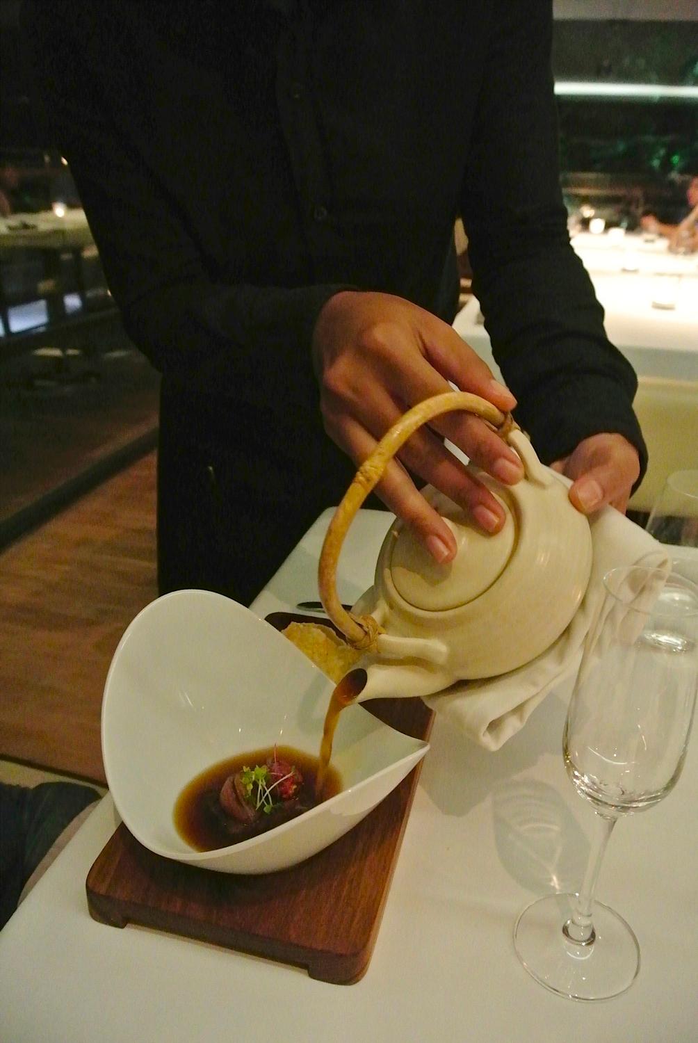お酒に合わせた日本スタイルの急須の中には ダシ汁が入っておりまする。
