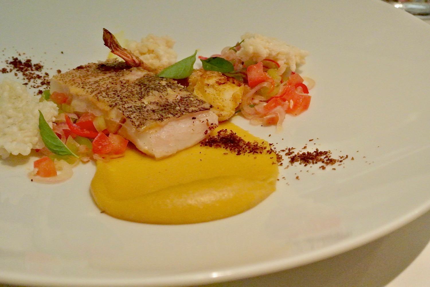 こちらは最初に登場した一品目! 白身魚のセビーチェ ここにサンバルマタが乗っています。