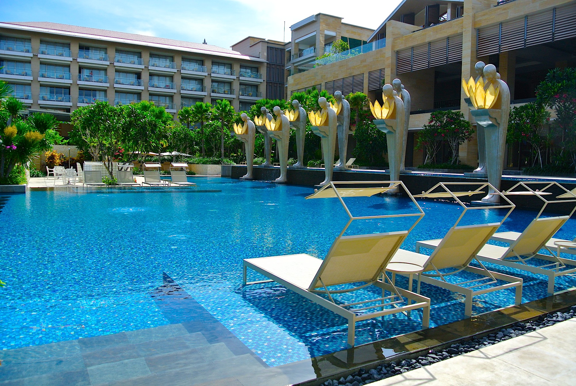ムリアリゾートに位置する ランプを持った女性象が印象的なコートヤードプール。