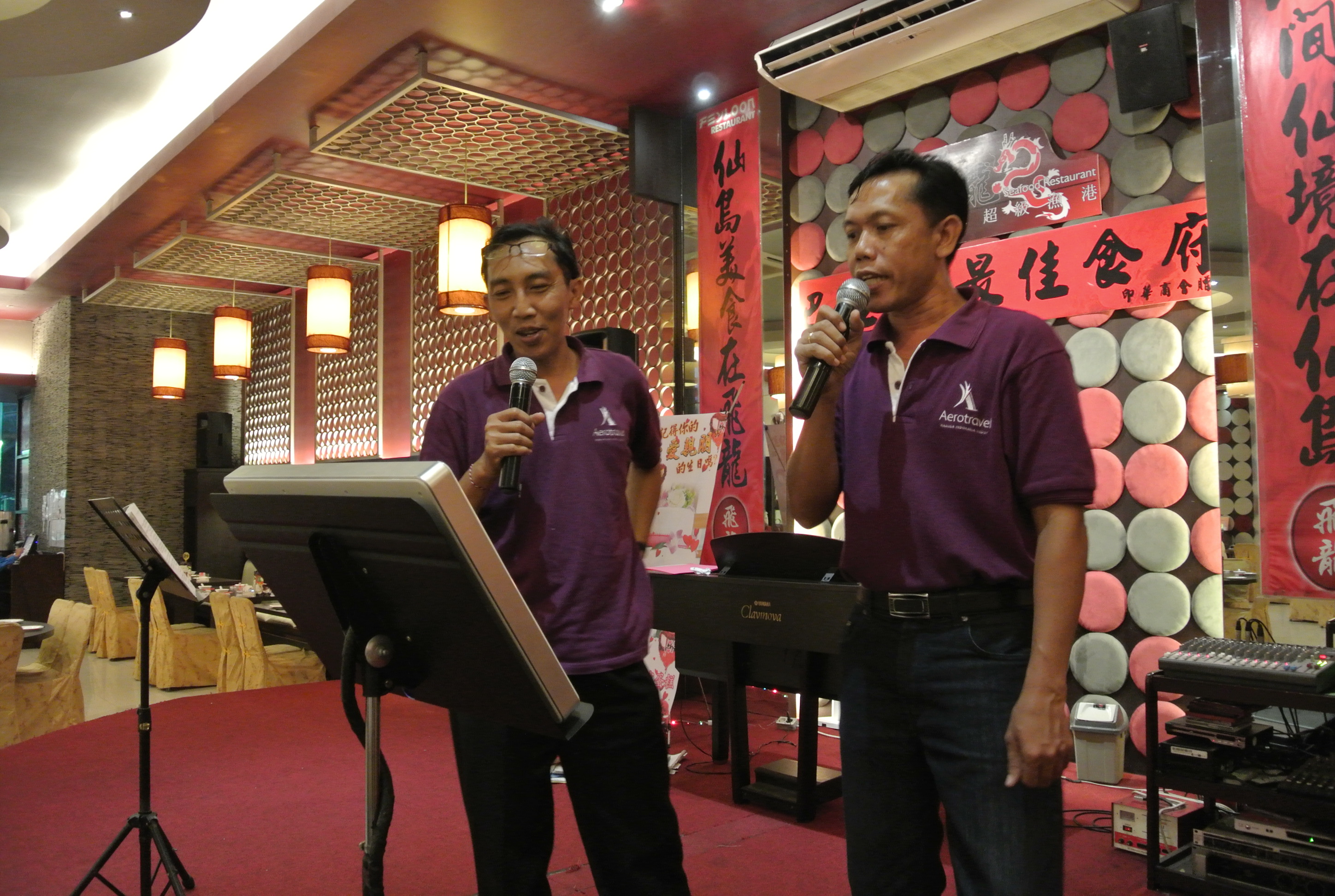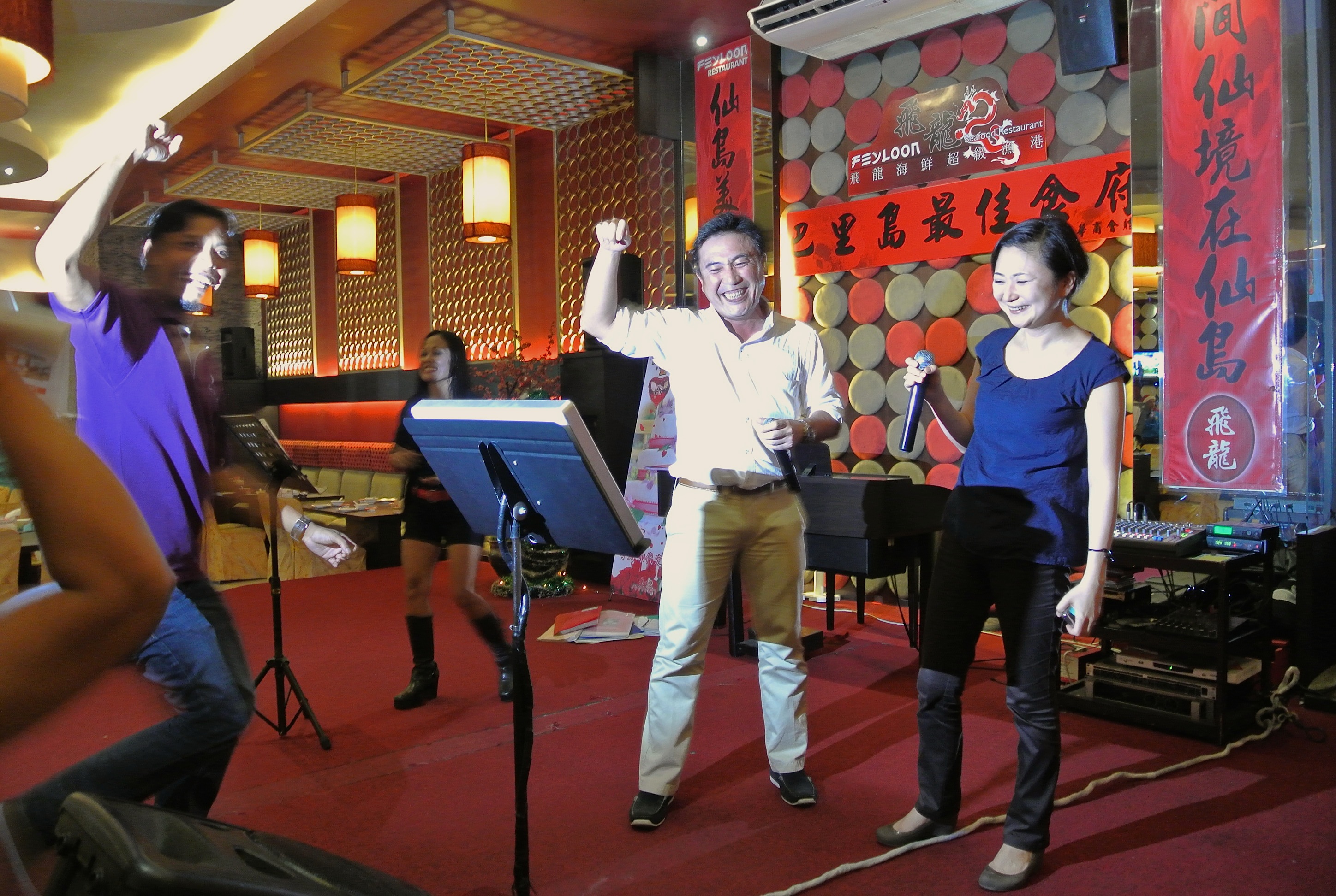 乾杯する前から歌って踊りだす。( ´∀`)ゲラゲラ